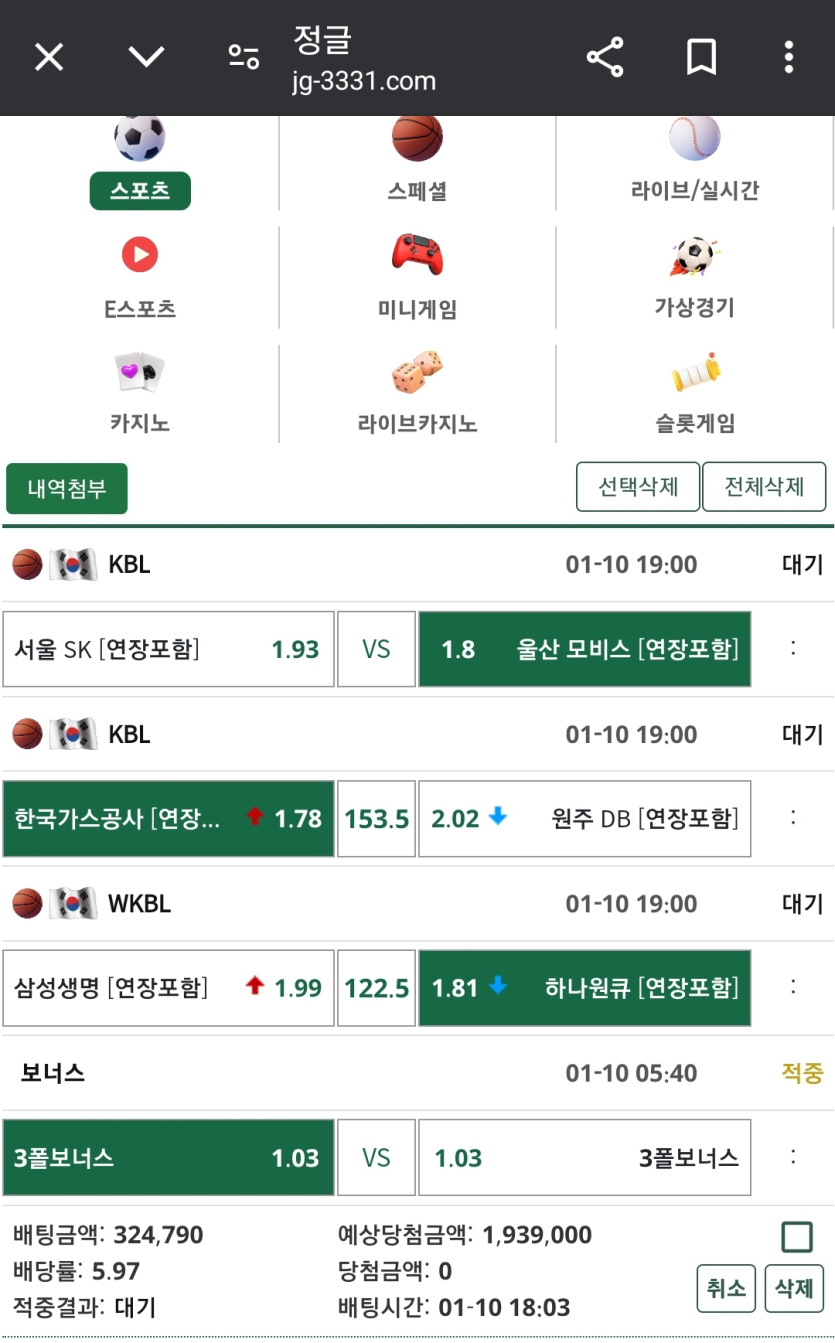 오늘도 저의 토토 배팅 내역 올려봅니다