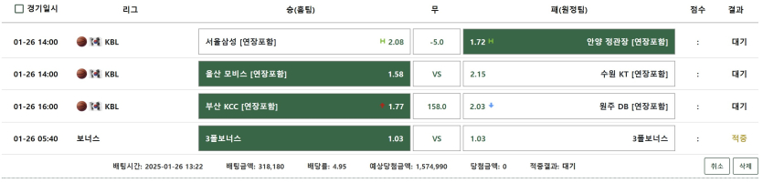 오늘 오후 국농(남) 배팅 내역 공유합니다.