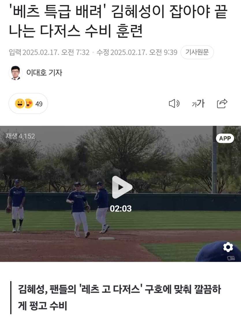 올해 다져스 우승충분한 라인업이던데 혜성이 반지하나 챙겨오나요 ㅎㅎ