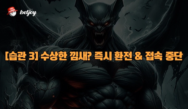 ![[습관 3] 수상한 낌새? 즉시 환전 & 접속 중단 [습관 3] 수상한 낌새? 즉시 환전 & 접속 중단](https://www.bet-joy.net/data/editor/2506/22b7bd809bbeb4cb7c1059ea9e914abc_1749538200_5885.webp)