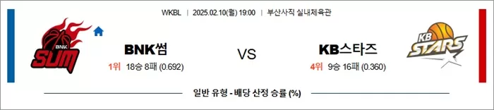 [벳조이 스포츠 분석]2월 10일 WKBL BNK썸 vs KB스타즈