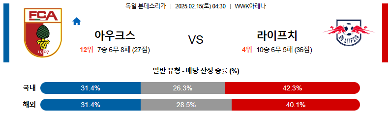 [벳조이 스포츠 분석]02일 15일 04:30 분데스리가 아우크스부르크 RB 라이프치히