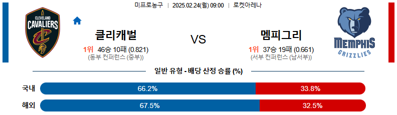 [벳조이 스포츠 분석]02일 24일 09:00 NBA 클리블랜드 캐벌리어스 멤피스 그리즐리즈