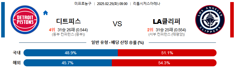 [벳조이 스포츠 분석]02일 25일 09:00 NBA 디트로이트 피스톤스 LA 클리퍼스