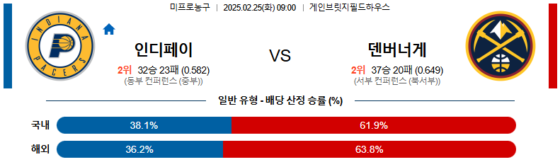 [벳조이 스포츠 분석]02일 25일 09:00 NBA 인디애나 페이서스 덴버 너겟츠