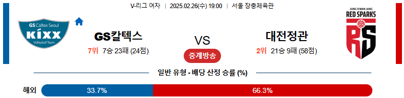 [벳조이 스포츠 분석]02월 26일 19:00 V-리그 여자부 GS 칼텍스 정관장