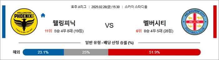 [벳조이 스포츠 분석]2월 28일 호주A리그 웰링피닉 vs 멜버시티