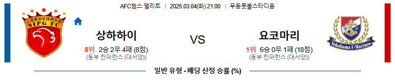 [벳조이 스포츠 분석]03월04일 상하이하이강:요코하마마리노스 AFC챔피언스리그 분석
