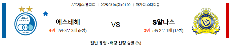 [벳조이 스포츠 분석]03월04일 에스테글랄:알나스르 AFC챔스 분석 및 예측