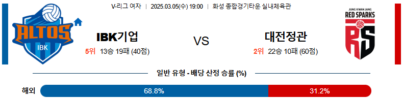 [벳조이 스포츠 분석]03월 05일 19:00 V-리그 여자부 IBK 기업은행 정관장