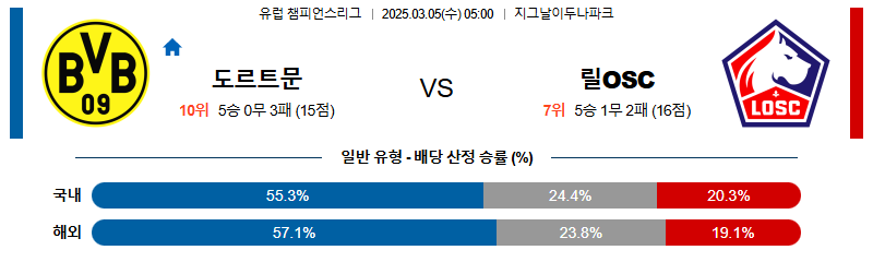 [벳조이 스포츠 분석]03월05일 도르트문트:릴OSC UEFA챔피언스리그 분석 및 예측