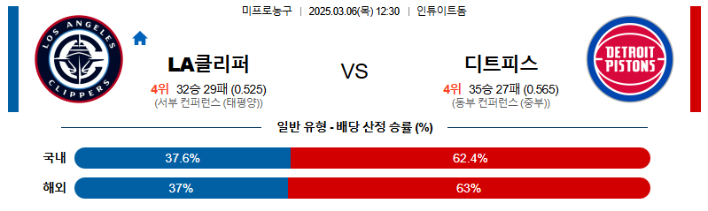 [벳조이 스포츠 분석]03월06일 LA클리퍼스:디트로이트 NBA 분석 및 예측