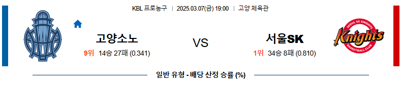 [벳조이 스포츠 분석]03월07일 고양소노:서울SK KBL 분석 및 예측