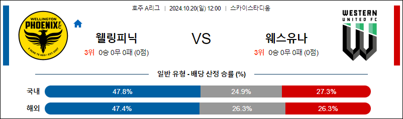 [벳조이]10월 20일 웰링턴 vs 웨스턴UTD 【A리그】