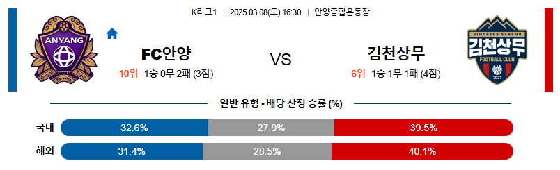 [벳조이 스포츠 분석]03월08일 안양:김천 K리그1 분석 및 예측