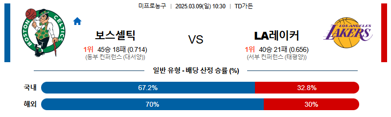 [벳조이 스포츠 분석]03월09일 보스턴:LA레이커스 NBA 분석 및 예측