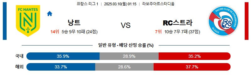 [벳조이 스포츠 분석]03월010일 낭트:스트라스부르 리그앙 분석 및 예측