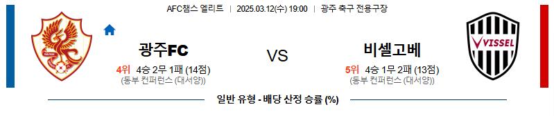[벳조이 스포츠 분석]03월12일 광주FC:비셀고베 AFC챔피언스리그 분석 및 예측