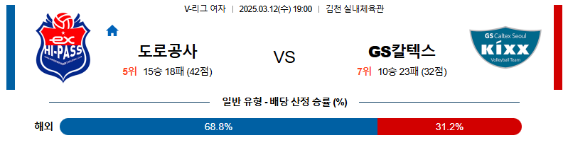[벳조이 스포츠 분석]03월12일 도로공사:GS칼텍스 V리그(여) 분석 및 예측