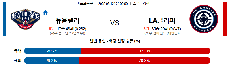 [벳조이 스포츠 분석]03월12일 뉴올리언스:LA클리퍼스 NBA 분석 및 예측