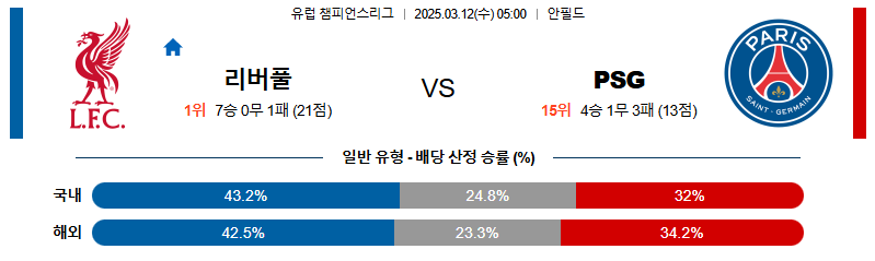[벳조이 스포츠 분석]03월12일 리버풀:PSG UEFA챔피언스리그 분석 및 예측