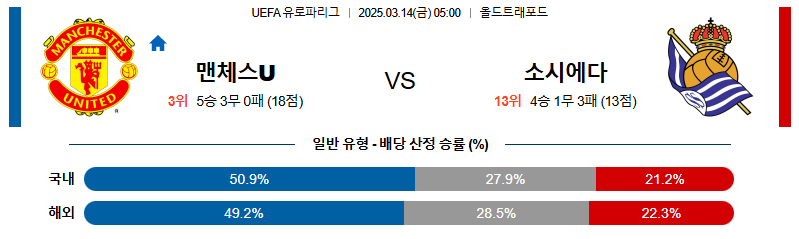 [벳조이 스포츠 분석]03월14일 맨유:소시에다드 UEFA유로파리그 분석 및 예측