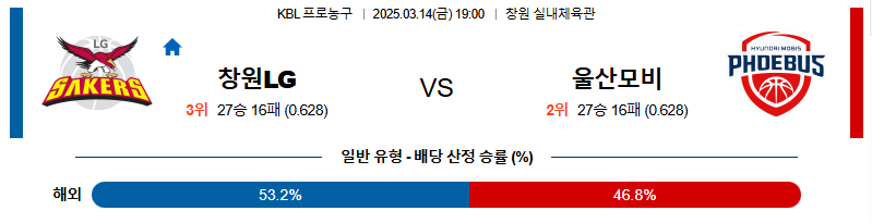 [벳조이 스포츠 분석]03월14일 창원LG:울산현대모비스 KBL 분석 및 예측