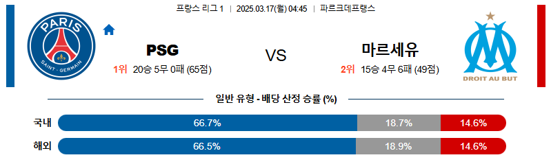 [벳조이 스포츠 분석]03월17일 파리생제르맹:마르세유 리그앙 분석 및 예측