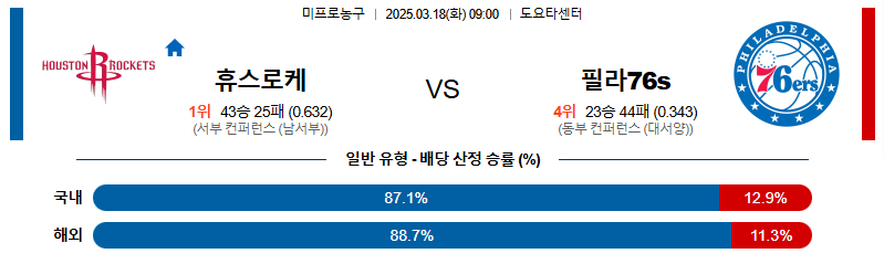 [벳조이 스포츠 분석]03월18일 휴스턴:필라델피아 NBA 분석 및 예측