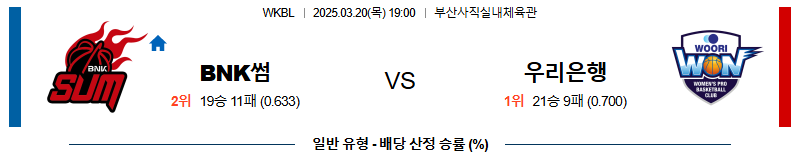 [벳조이 스포츠 분석]03월20일 BNK썸:우리은행 WKBL 분석 및 예측