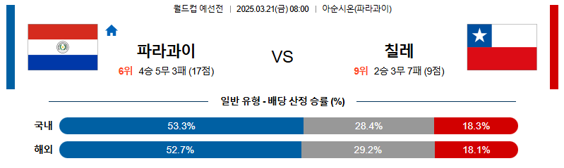 [벳조이 스포츠 분석]03월21일 파라과이:칠레 월드컵예선전 분석 및 예측