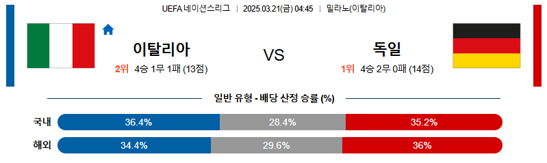[벳조이 스포츠 분석]03월21일 이탈리아:독일 UEFA네이션스리그 분석 및 예측