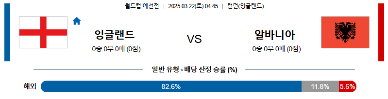 [벳조이 스포츠 분석]03월22일 잉글랜드:알바니아 월드컵예선전 분석 및 예측