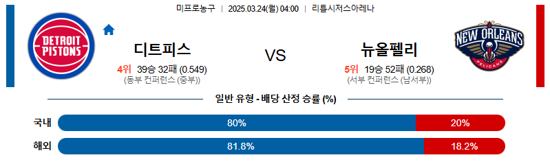 [벳조이 스포츠 분석]03월24일 디트로이트:뉴올리언스 NBA 분석 및 예측