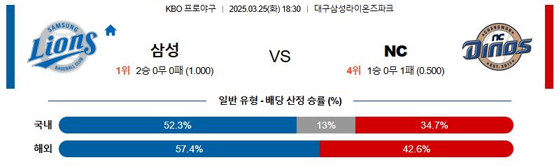 [벳조이 스포츠 분석]03월25일 삼성:NC KBO 분석 및 예측