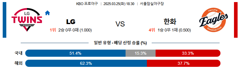 [벳조이 스포츠 분석]03월25일 LG:한화 KBO 분석 및 예측