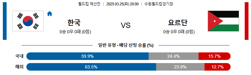 [벳조이 스포츠 분석]03월25일 대한민국:요르단 월드컵예선전 분석 및 예측