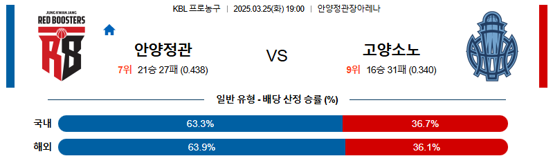[벳조이 스포츠 분석]03월25일 정관장:소노 KBL 분석 및 예측