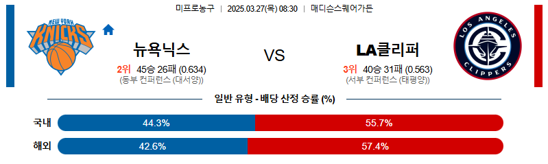 [벳조이 스포츠 분석]03월27일 뉴욕닉스:LA클리퍼스 NBA 분석 및 예측