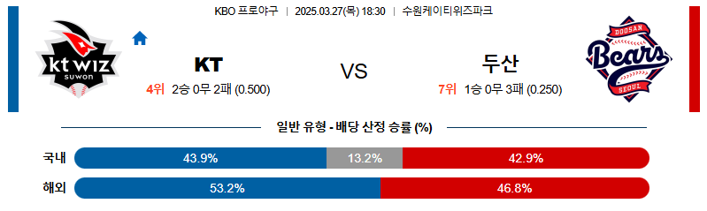 [벳조이 스포츠 분석]03월27일 KT:두산 KBO 분석 및 예측