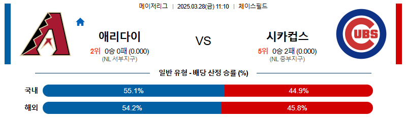 [벳조이 스포츠 분석]03월28일 애리조나:시카고컵스 MLB 분석 및 예측