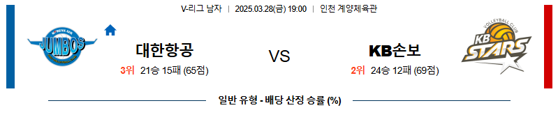 [벳조이 스포츠 분석]03월28일 대한항공:KB손해보험 V리그 분석 및 예측