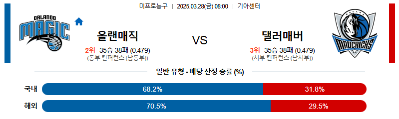 [벳조이 스포츠 분석]03월28일 올랜도:댈러스 NBA 분석 및 예측