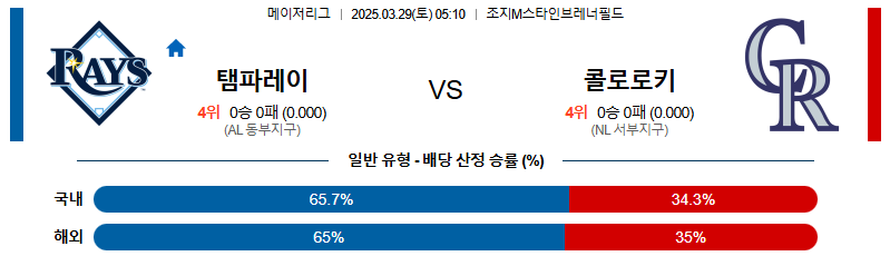 [벳조이 스포츠 분석]03월29일 탬파베이:콜로라도 MLB 분석 및 예측