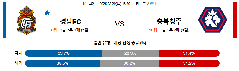 [벳조이 스포츠 분석]03월29일 경남:충북청주 K리그2 분석 및 예측