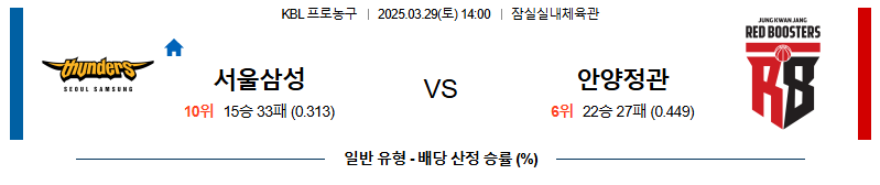 [벳조이 스포츠 분석]03월29일 서울삼성:안양정관장 KBL 분석 및 예측