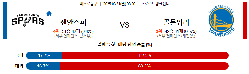 [벳조이 스포츠 분석]03월31일 샌안토니오:골든스테이트 NBA 분석 및 예측