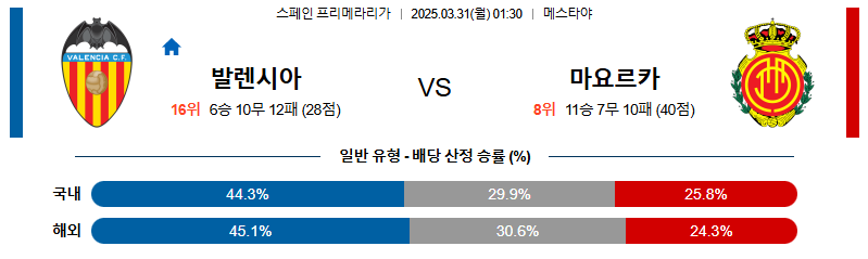 [벳조이 스포츠 분석]03월31일 발렌시아:마요르카 라리가 분석 및 예측