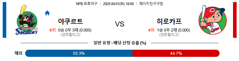 [벳조이 스포츠 분석]04월01일 야쿠르트:히로시마 NPB 분석 및 예측