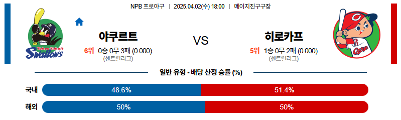 [벳조이 스포츠 분석]04월02일 야쿠르트:히로시마 NPB 분석 및 예측